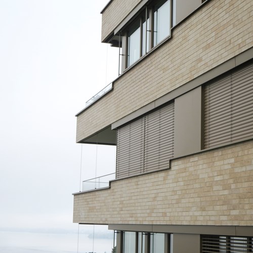 Fassadenfläche: 1200 qmRiemchen: Naturstein glatt, freie Längen