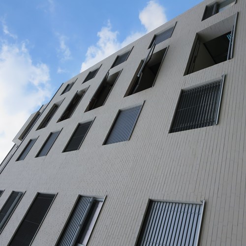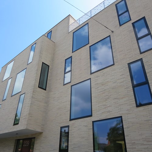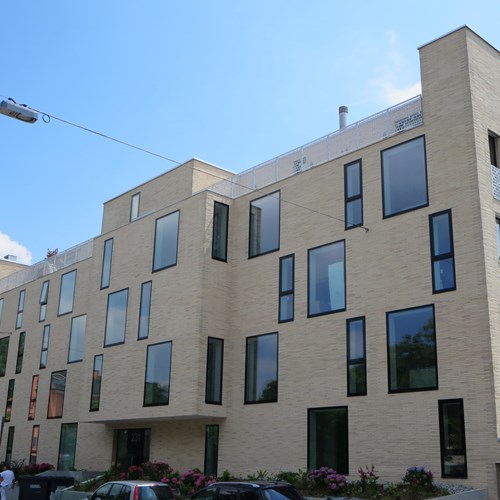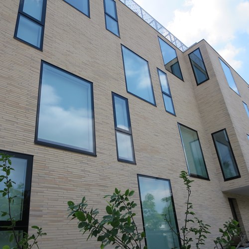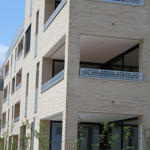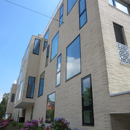Fassadenfläche: 1500 qmRiemchen: Langformat Sonderbrand Sonderteile: Storenkästen